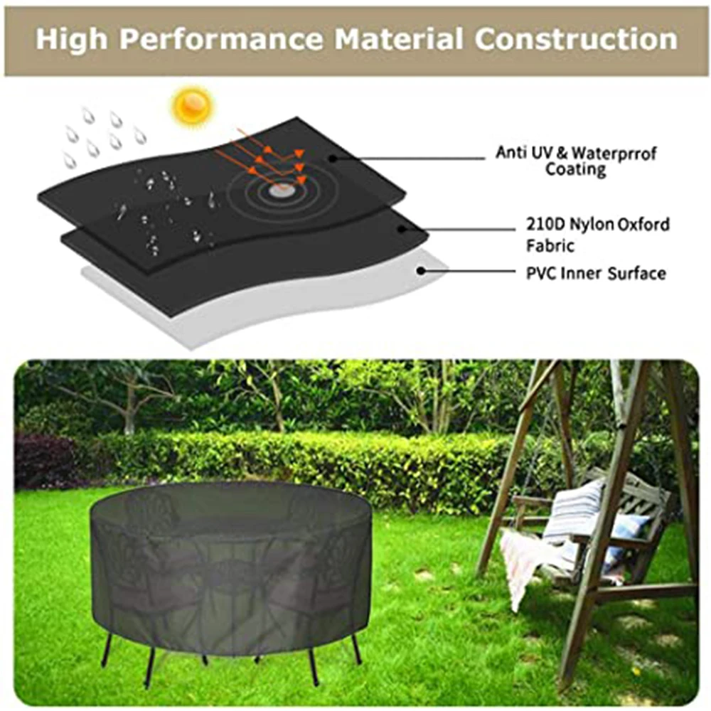 1. Waterproof and weather-resistant: the patio furniture cover adopts oxford cloth, which has high performance of wateproofness and breathability, thick and durable, protecting your furniture from cold winter and bad weather.