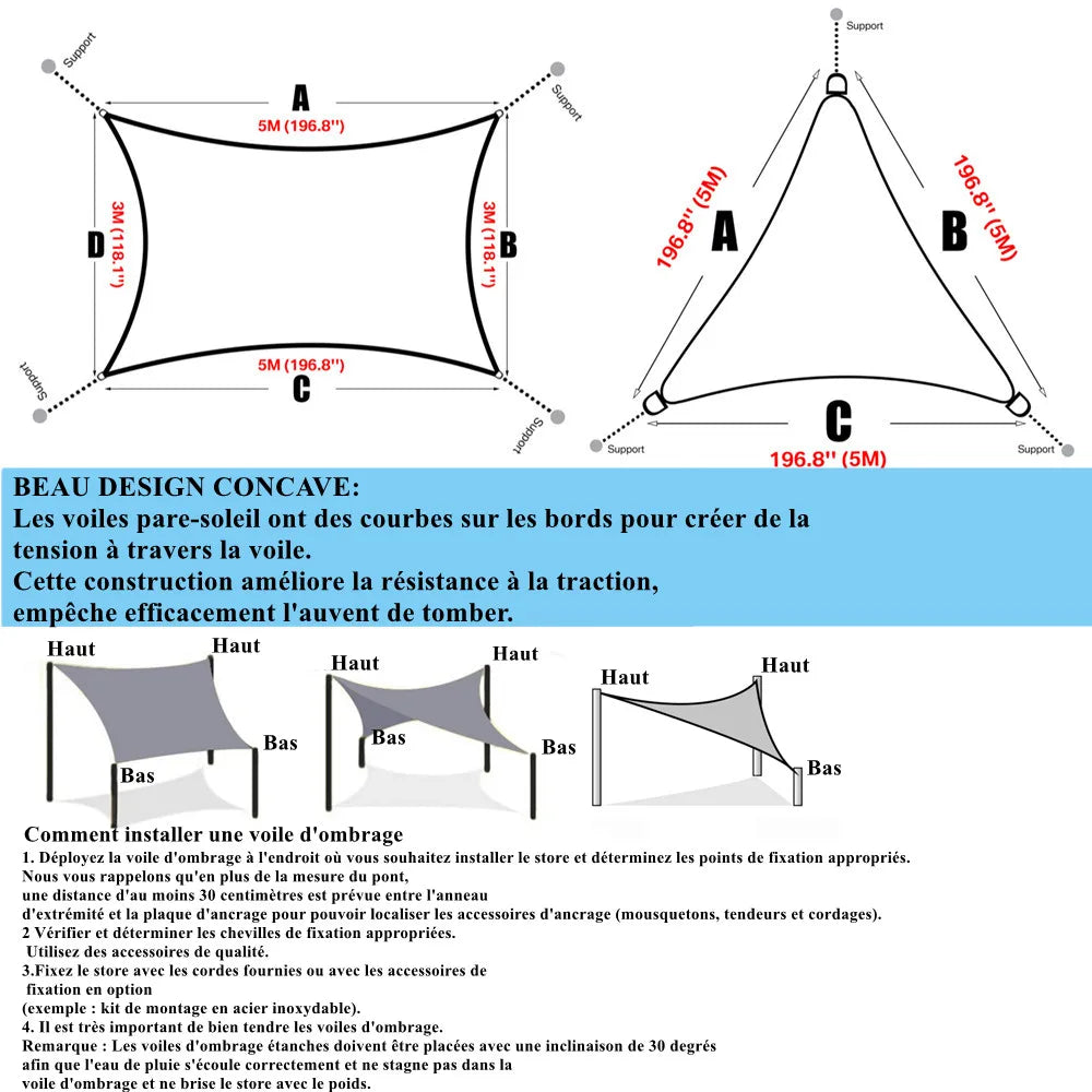 Voile d'ombrage rectangulaire ou carré